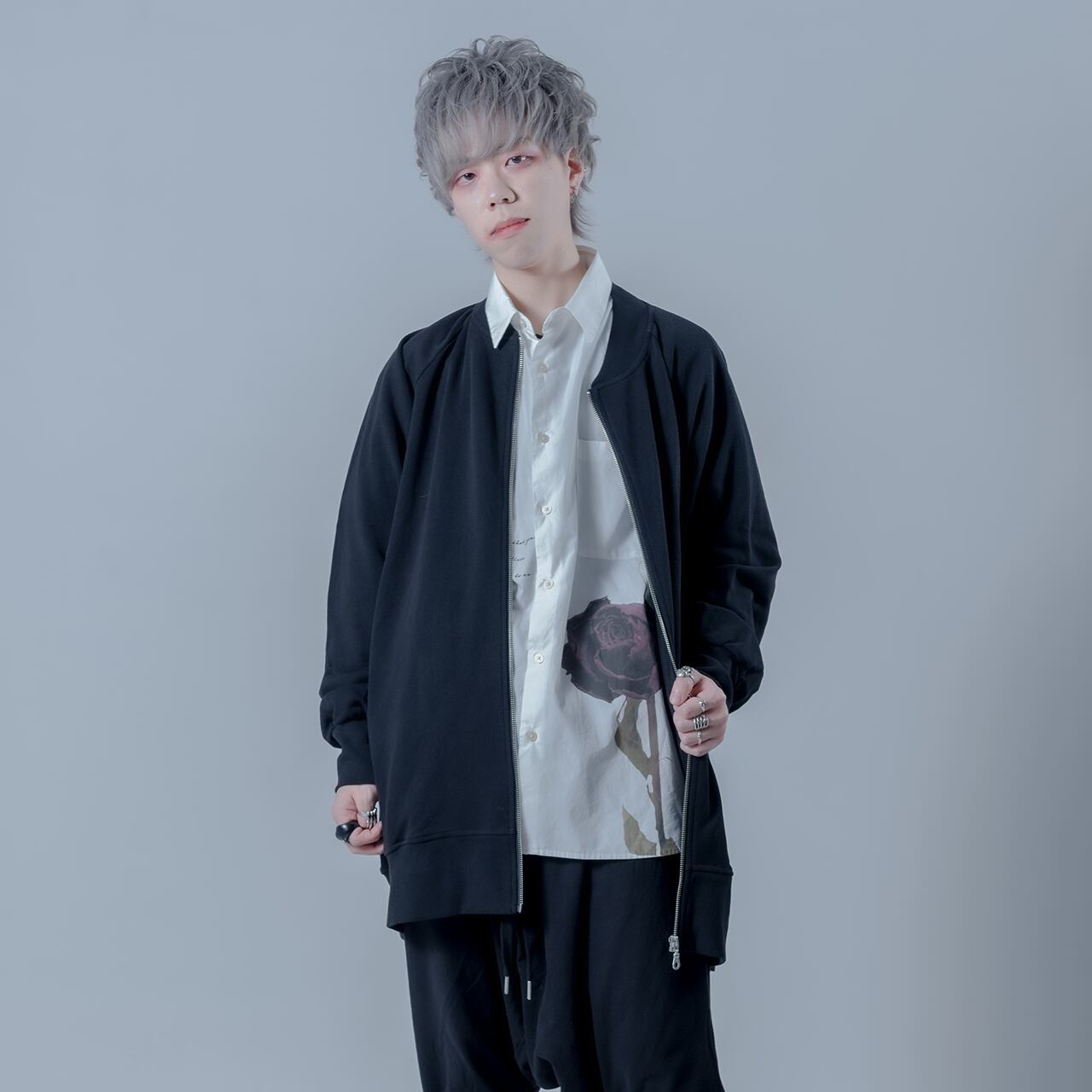 優しく包み込むような生地感のスウェットに、リブニットの襟がついたスタジアムジャケット風のアイテムです。