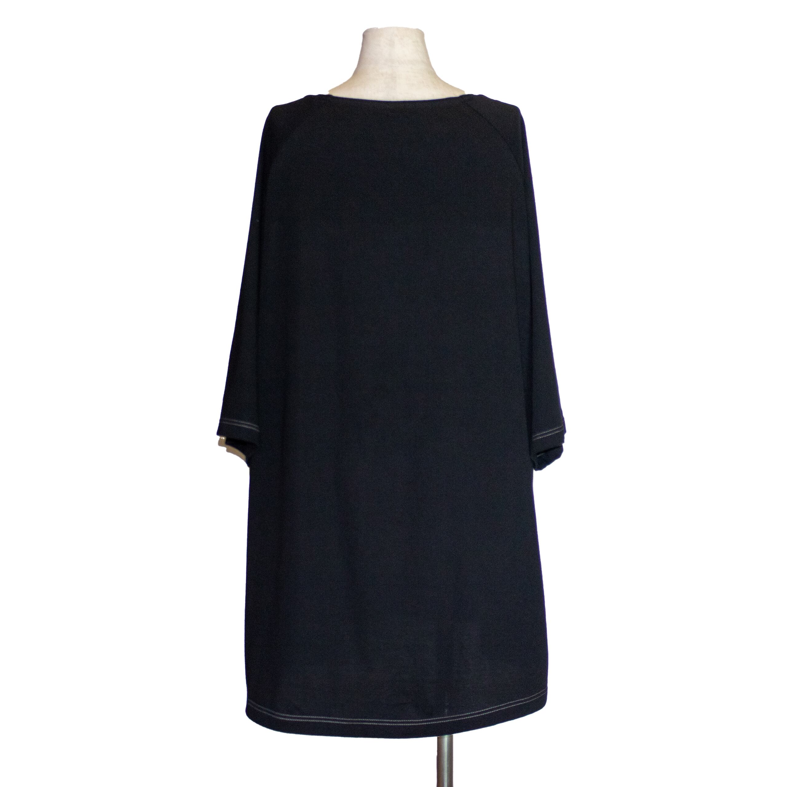 レーヨンのようなさらっとした薄手のニット生地を使用した前身頃を幅広くとってあるゆったりとしたラグランカットソーです。