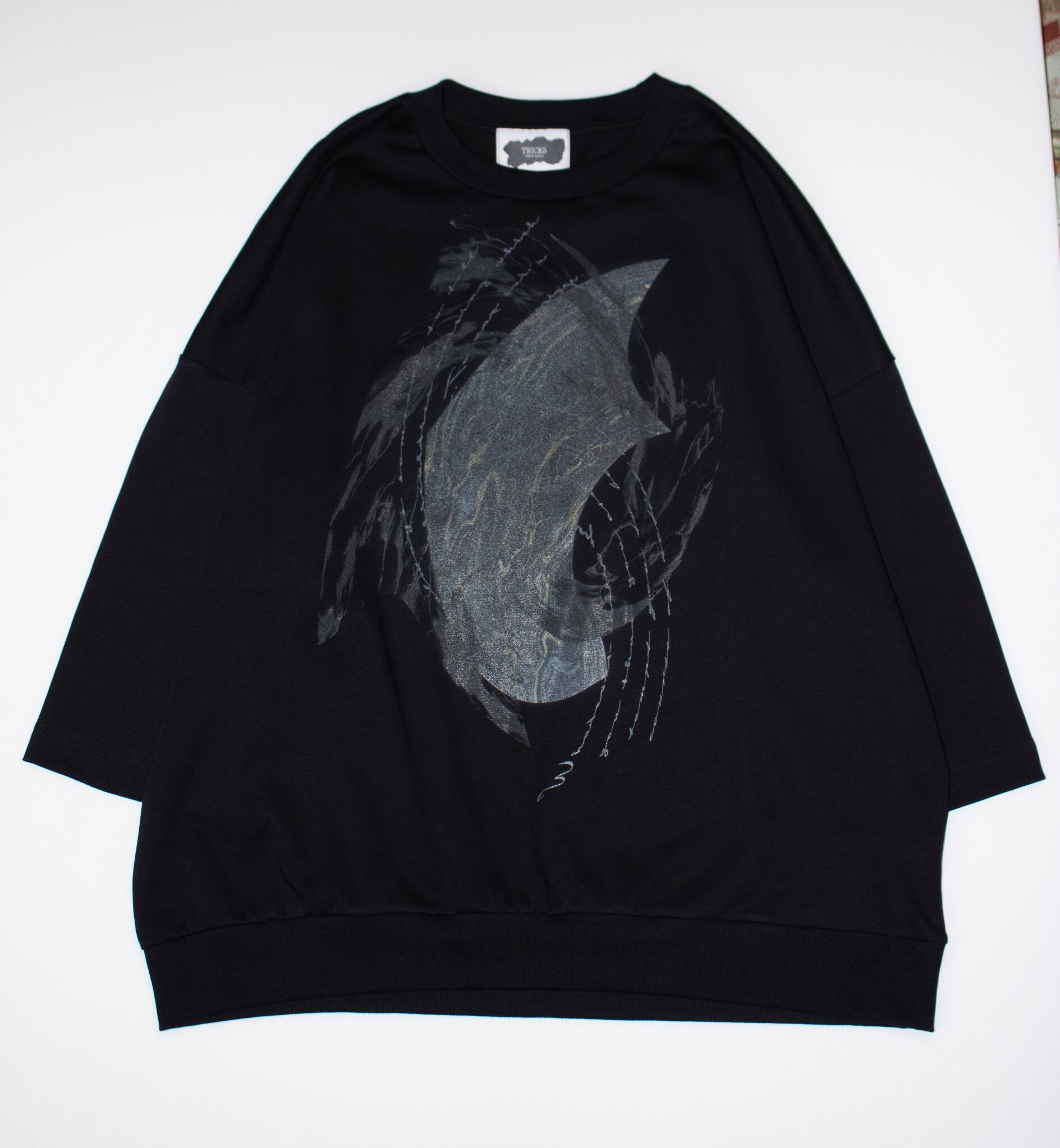 TRICKS グラフィック-ワイドビッグ7分スリーブ - ブラックゴールド