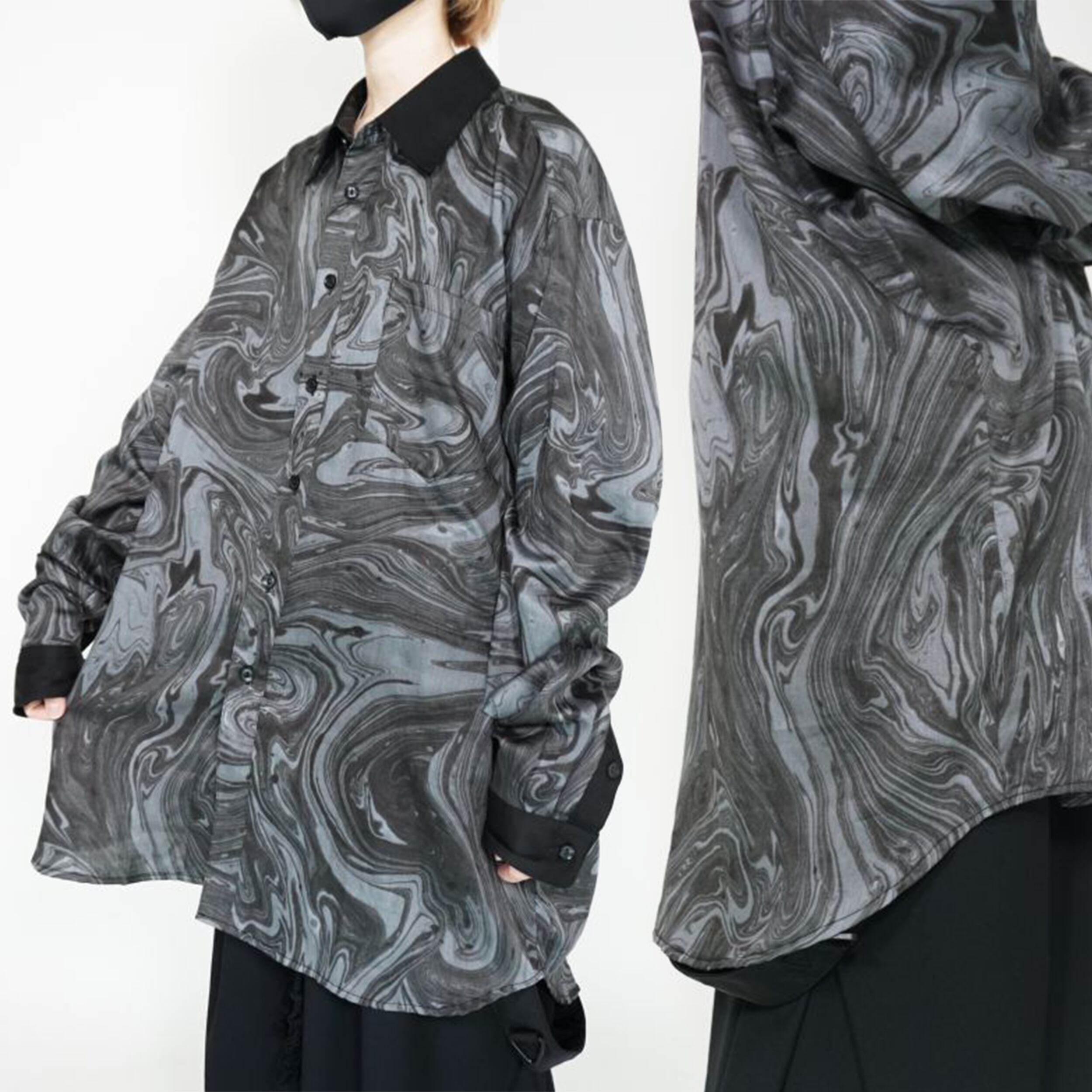 "I MISS YOU"マーブルシャツ(BK)