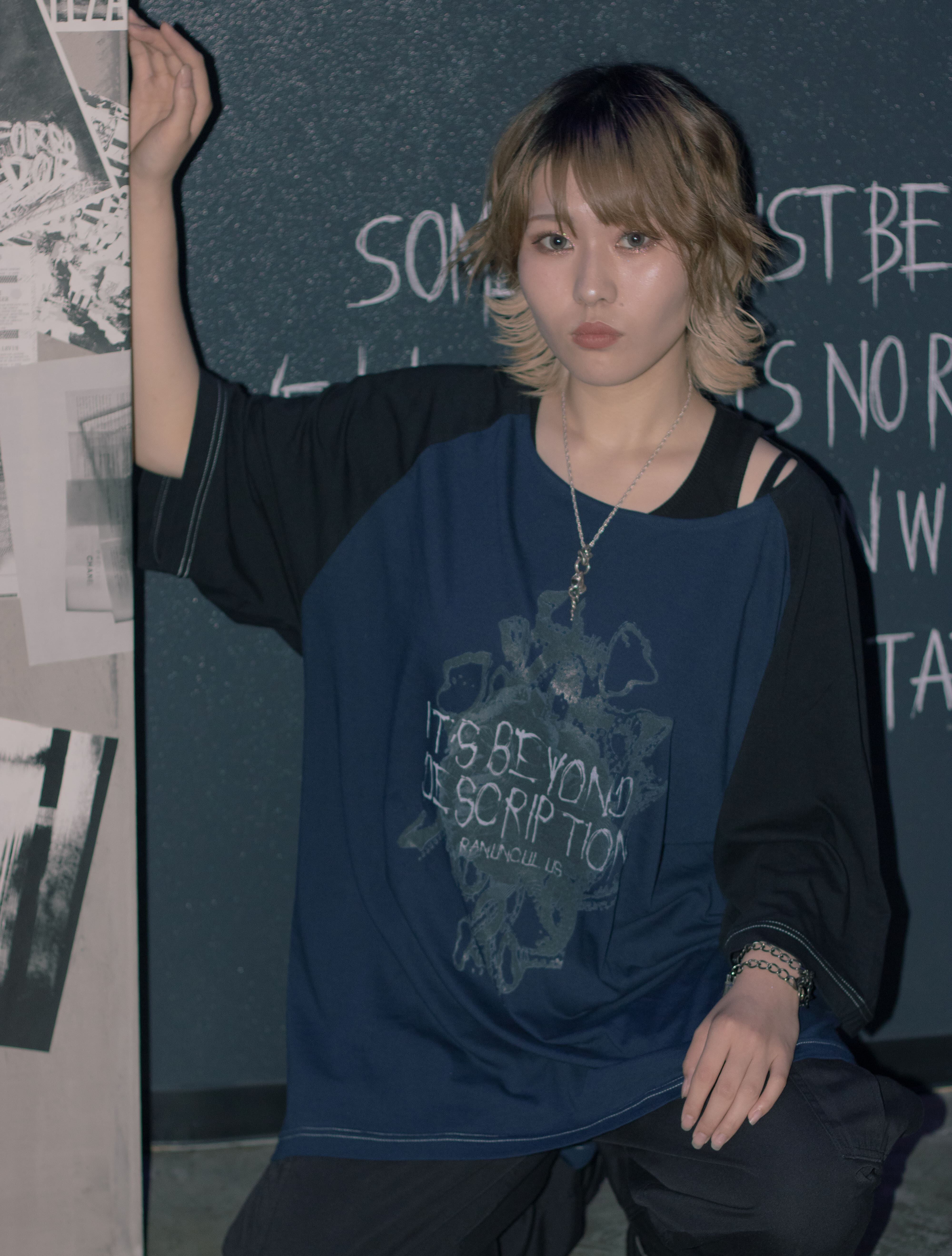TRICKS white stitch raglan BIG Tshirt Design「秘め事」