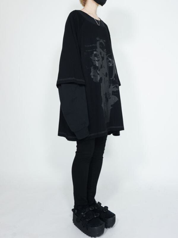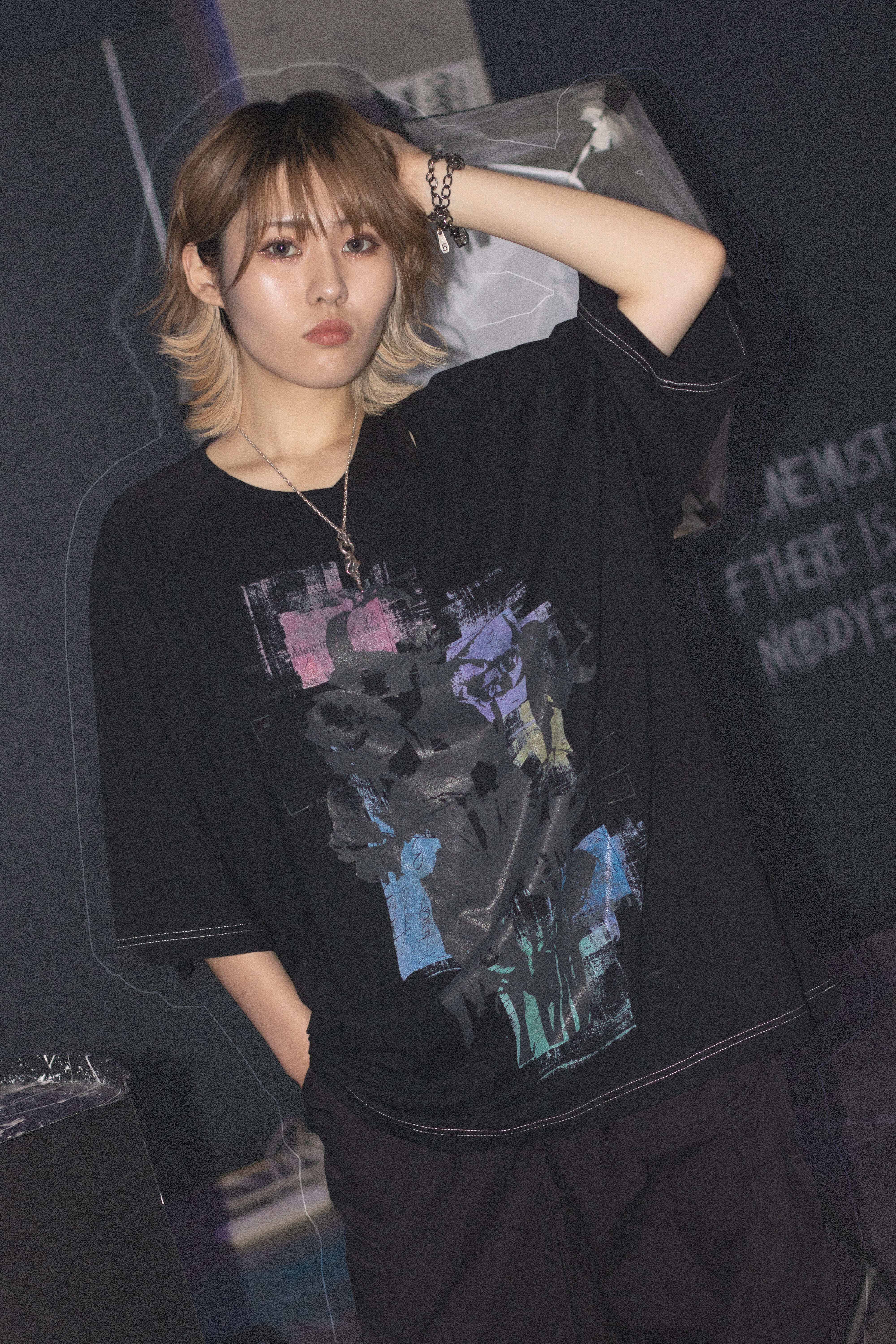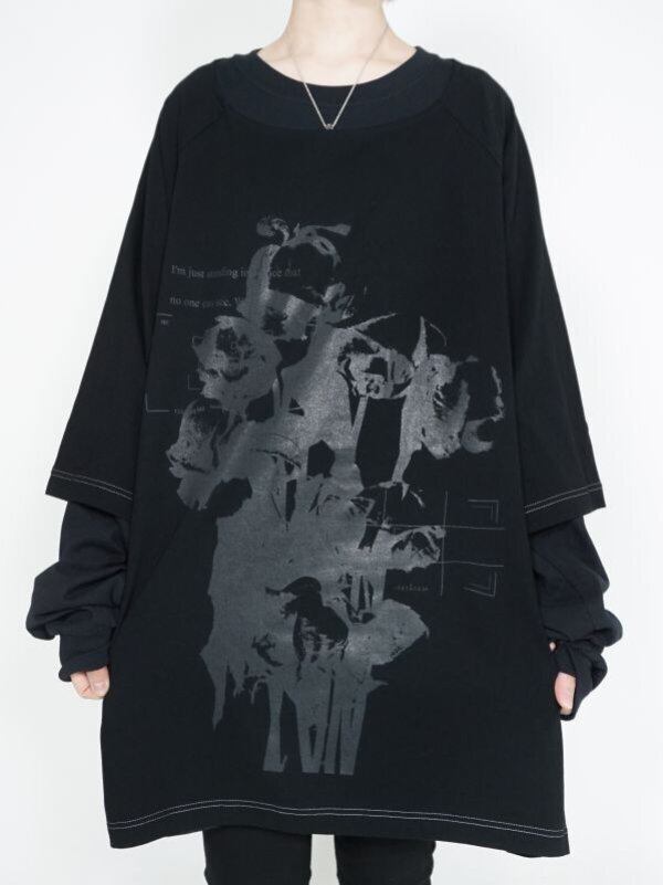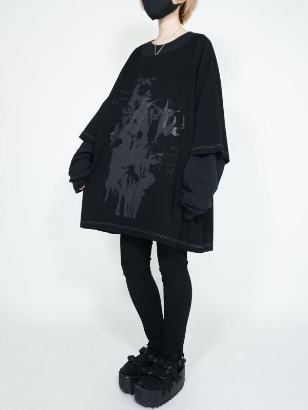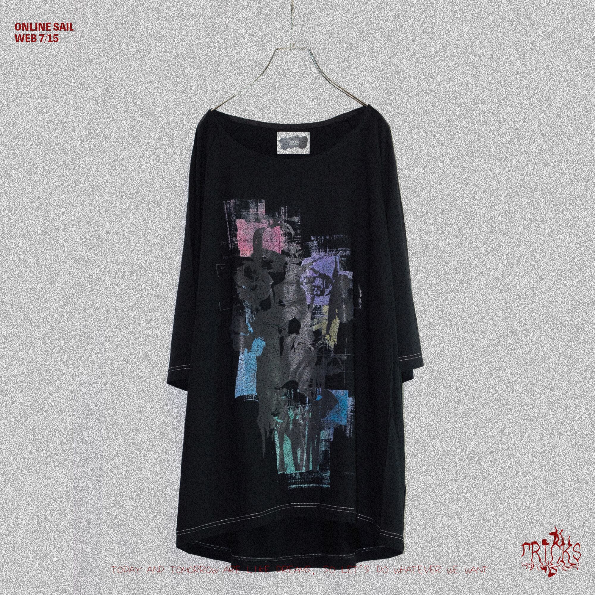 TRICKS white stitch raglan BIG Tshirt Design「new A place invisible to anyone 」