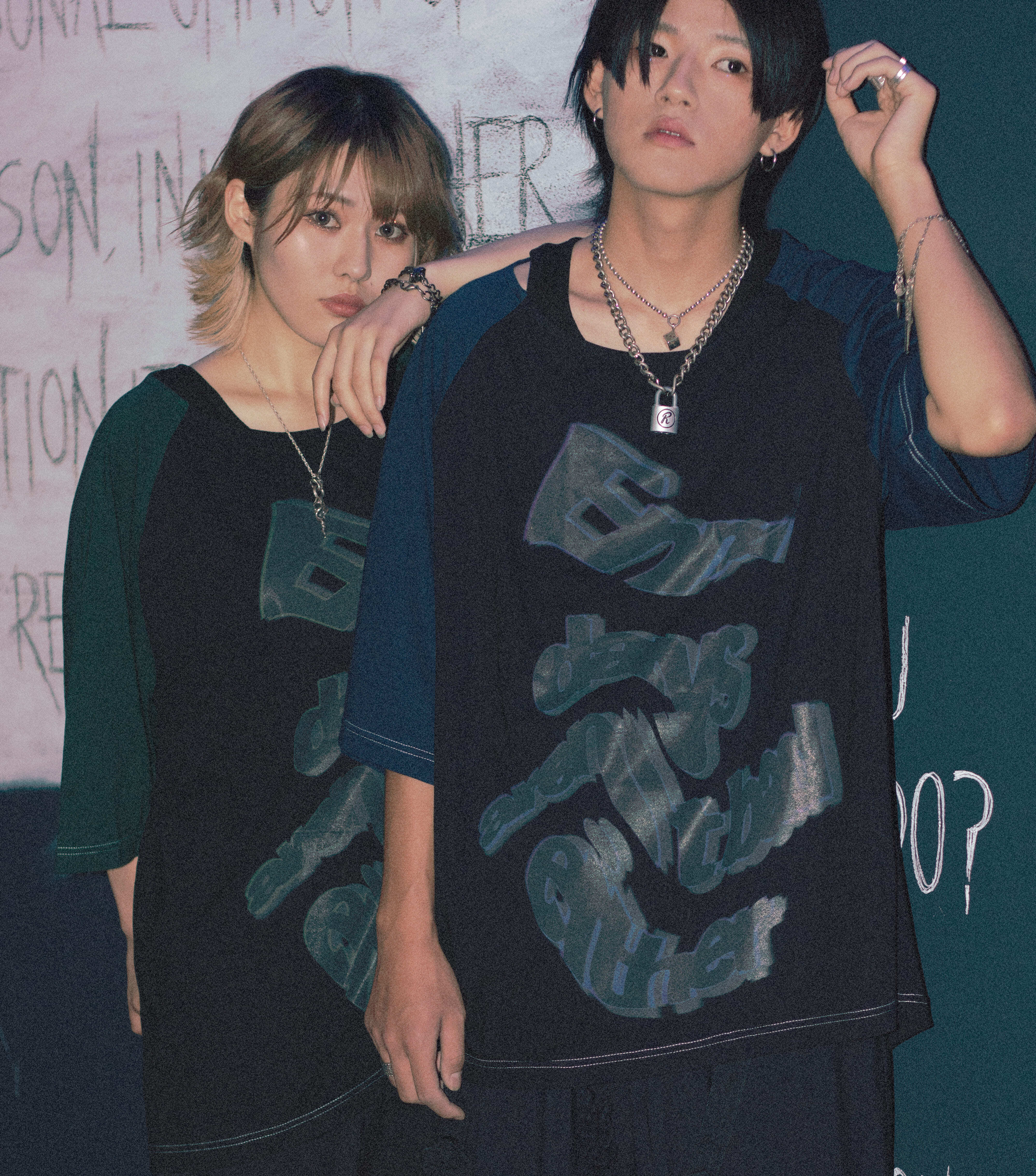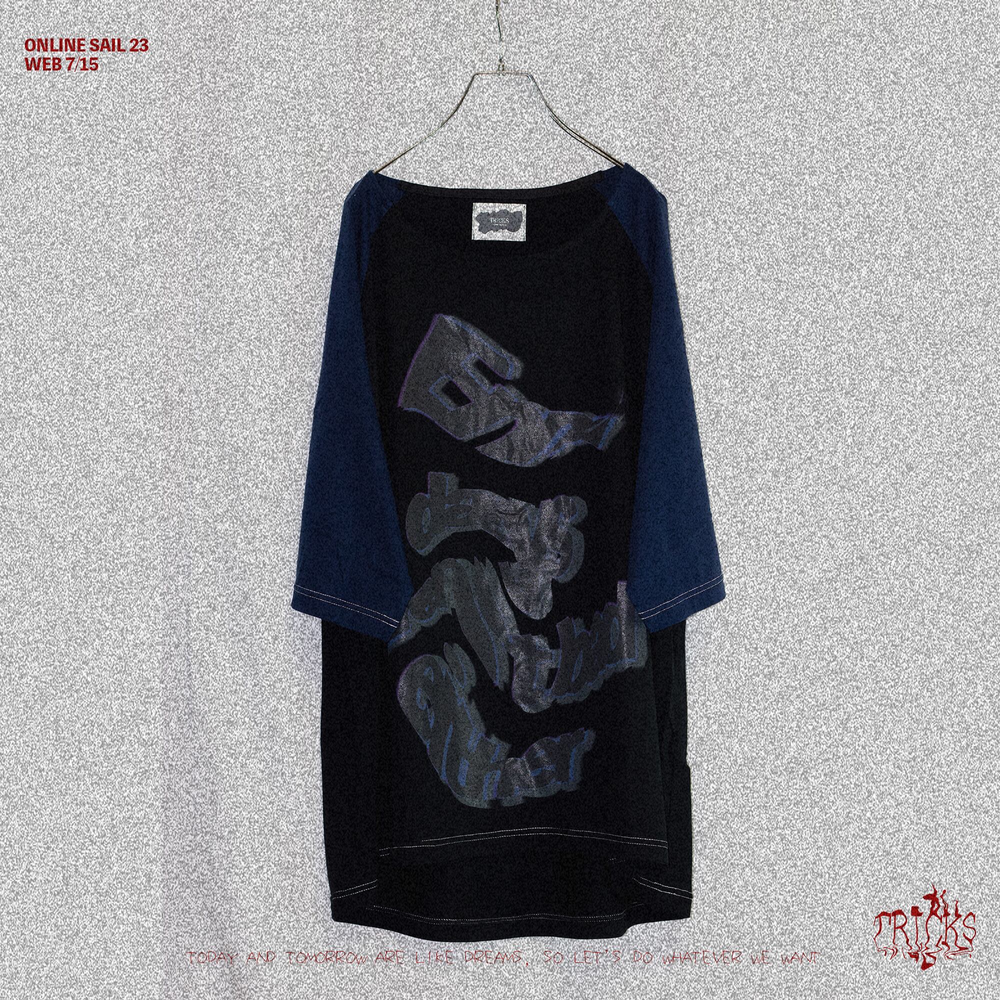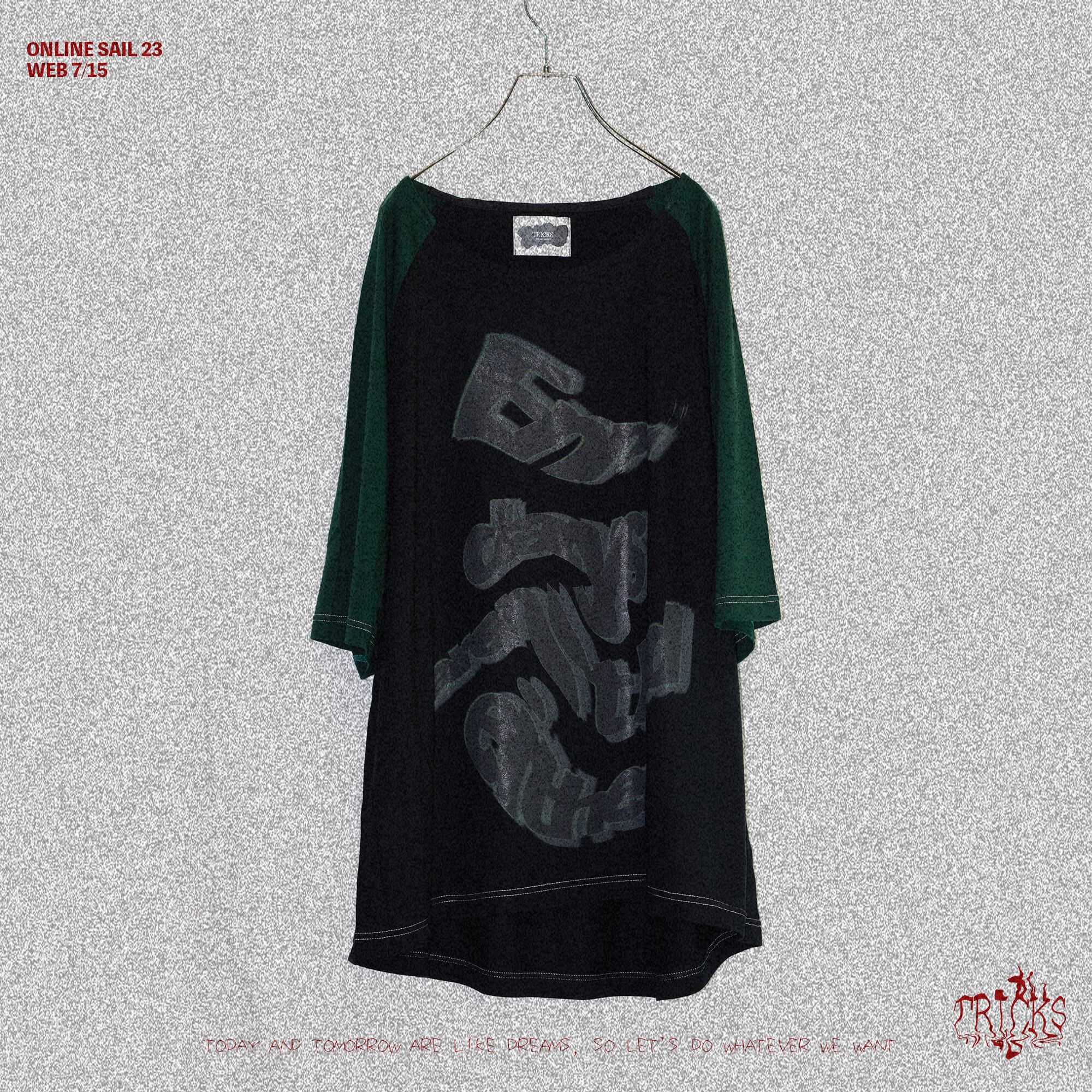 TRICKS white stitch raglan BIG Tshirt Design 「Ennui」