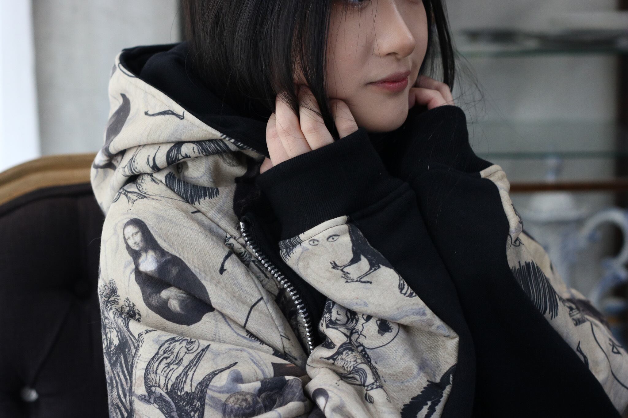 「TRICKS x 蟲の知らせ」 厭世という名の病 high neck double ZIP wars Parker「1点物」
